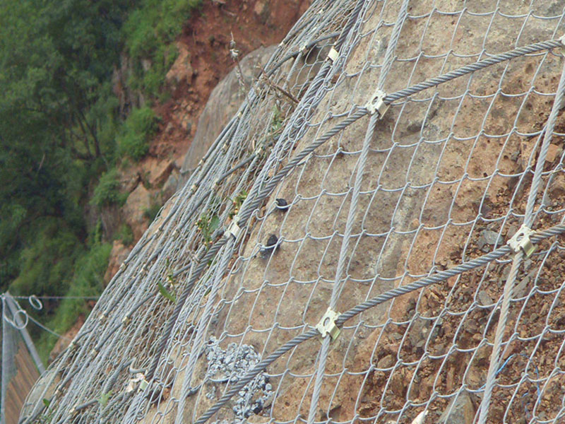 主動防護網(wǎng)是目前最有效的邊坡防護產(chǎn)品,主動防護網(wǎng)是將小片鋼絲繩網(wǎng)縫合在一起形成一張大網(wǎng),將整個山體罩住,防止落石滾落。即使非常陡峭的邊坡也同樣可以采用主動防護網(wǎng)的方式進行防護,陡峭的山坡落石一旦風(fēng)化,就極有可能發(fā)生塌方、滾落,傷及到路邊的行人與車輛。采用主動防護網(wǎng)進行防護,巖石風(fēng)化、滾落也只能在主動防護網(wǎng)的控制范圍內(nèi)運動。